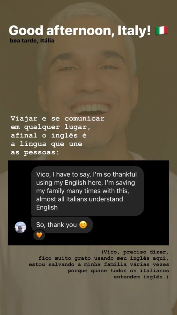Foi exatamente por isso que criei o “Inglês com Vico”: para poder transformar a vida de qualquer pessoa que queira aprender inglês no Brasil e no mundo.